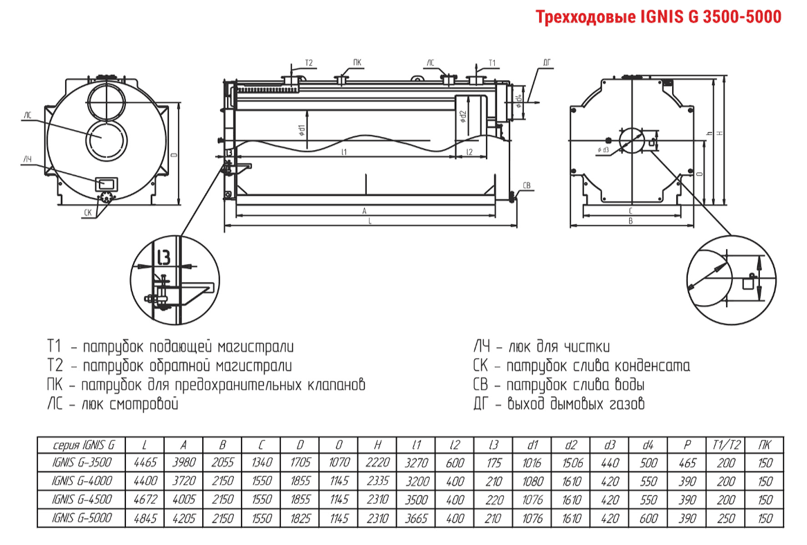 Технические характеристики водогрейного трёхходового котла ARCUS IGNIS G-5000